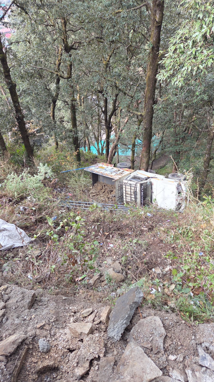 मसूरी उत्तराखंड चार दुकान रोड पर पिकअप वाहन खाई में गिरा, बड़ा हादसा टला चार…